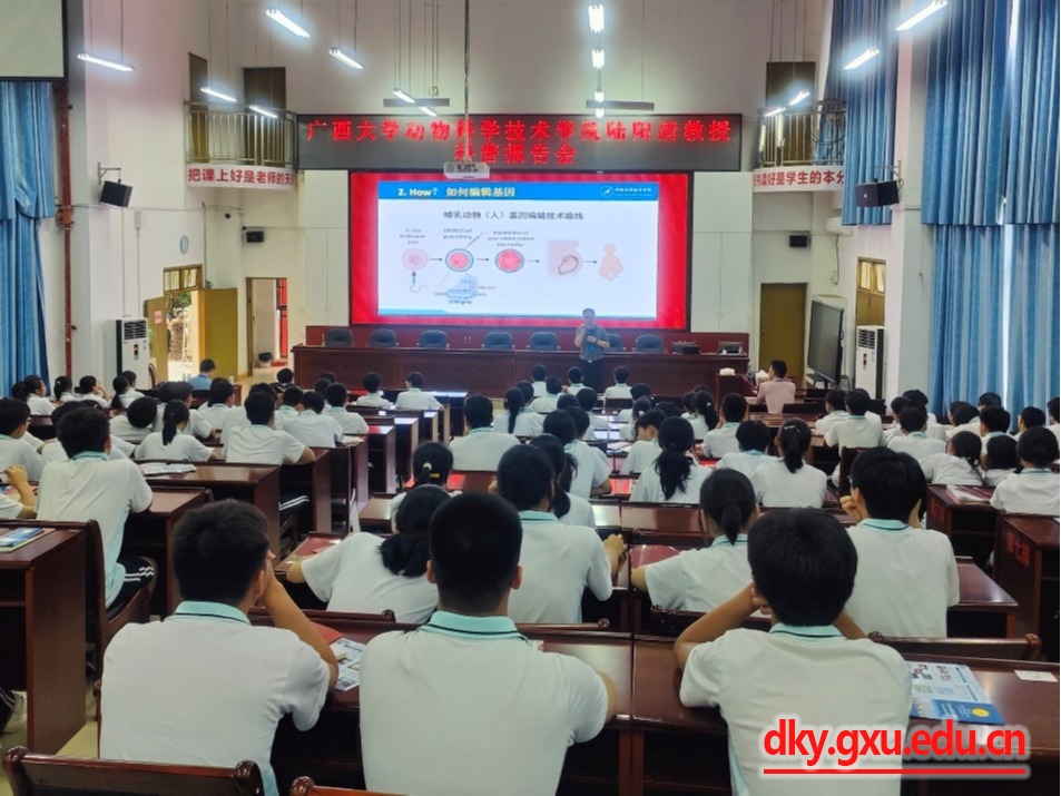 6月27日-28日,MILAN SPORT院长陆阳清教授一行先后前往河池市都安瑶族自治县高级中学和天峨县高级中学,以《基因编辑动物》为主题,为400余名高中同学作了一场精彩的科普报告。