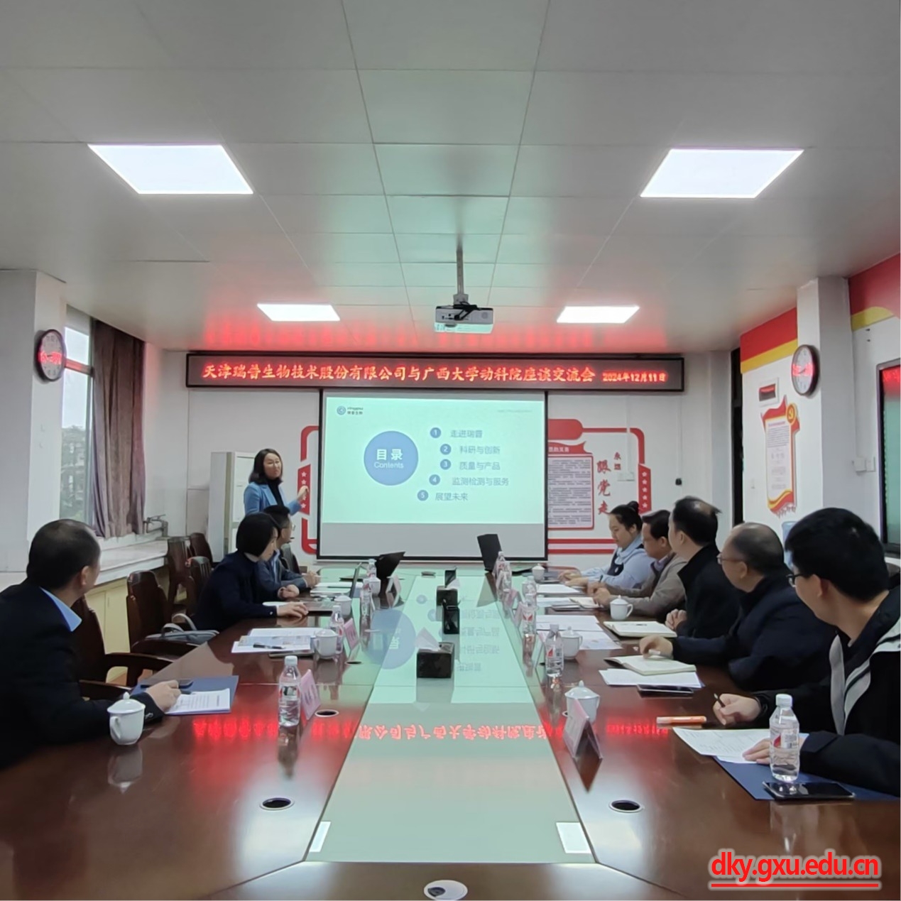 座谈中,米兰体育·(中国)官方网站院长陆阳清对天津瑞普生物技术股份有限公司的到访表示热烈欢迎,并进一步介绍了广西大学历史、学院的发展历程、产教融合、学科建设、社会服务及国际交流等情况。他表示希望未来能与天津瑞普生物技术股份有限公司在科学研究、产业技术服务、人才培养等方面开展更广泛、更深入的合作,实现共赢。